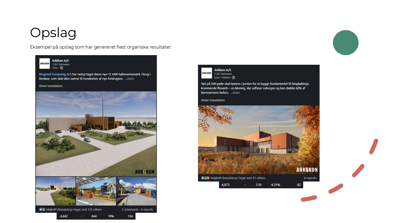 Alt det gjorde, at vores omtaler af projektet på Arkikons egen LinkedIn-side fik mere end 7.000 organiske eksponeringer. Og det er vel at mærke uden at medregne de afledte effekter som eksponeringer i traditionelle medier og delinger af Arkikons opslag.