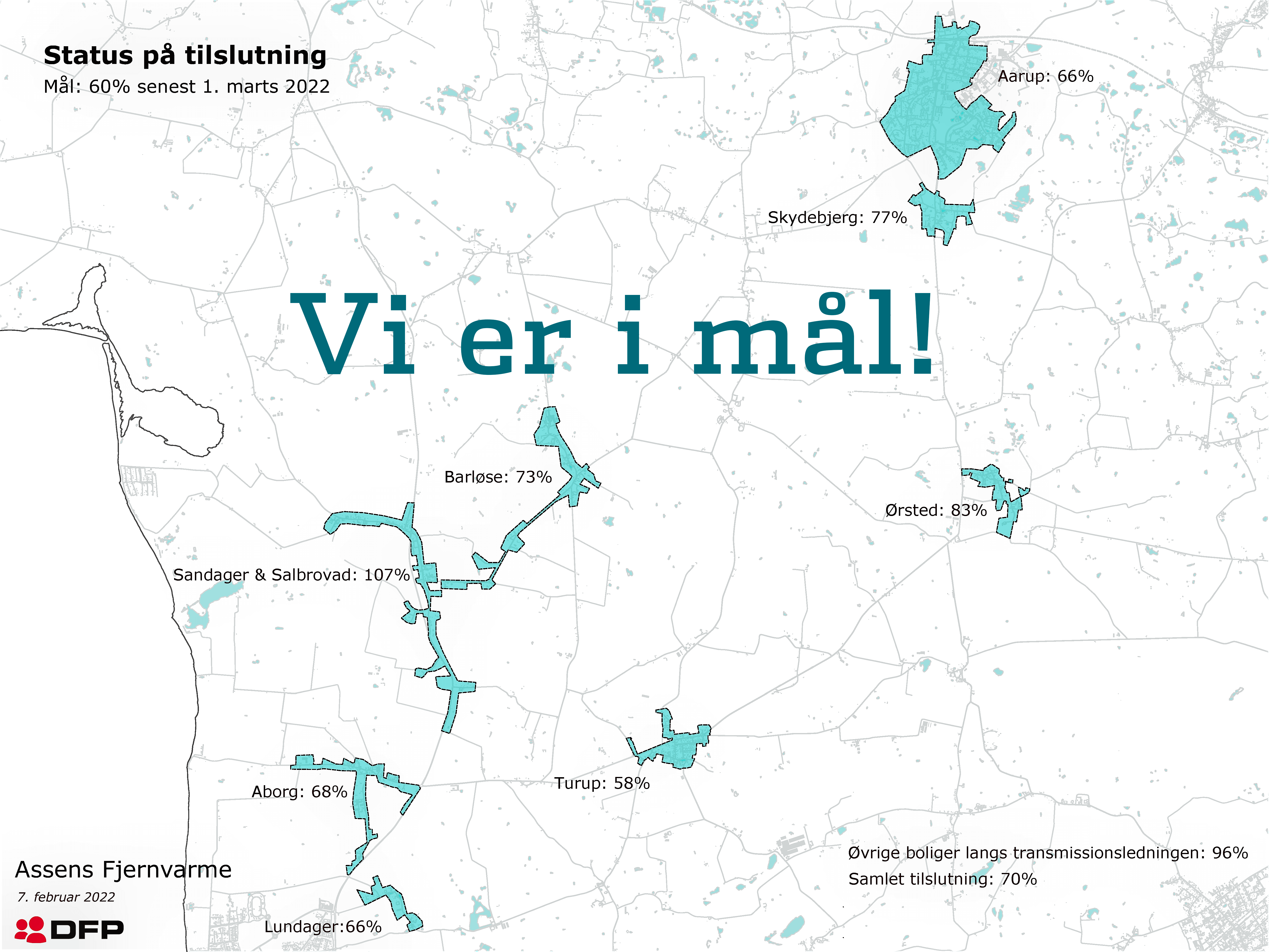 Vores opgave var at sikre en tilslutning på mindst 60 % til udvidelsen af fjernvarmenettet til Aarup og omliggende landsbyer – på et tidspunkt, hvor gasprisen stadig var lav.