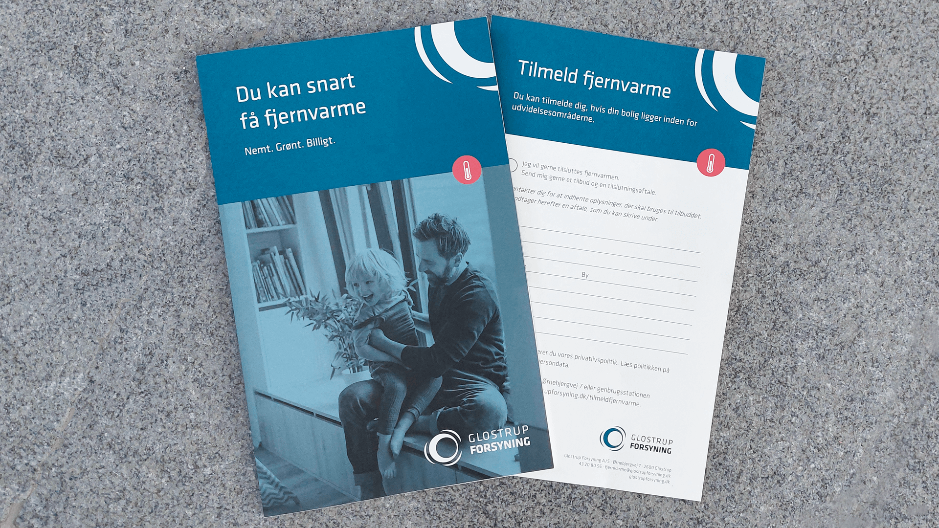 Valget faldt på en bred kampagne, der kan leve både i bybilledet og på digitale medier i hele projektperioden. Til en start fik alle berørte husstande også en brochure, der fortæller om fjernvarmen generelt og tilbuddet specifikt.